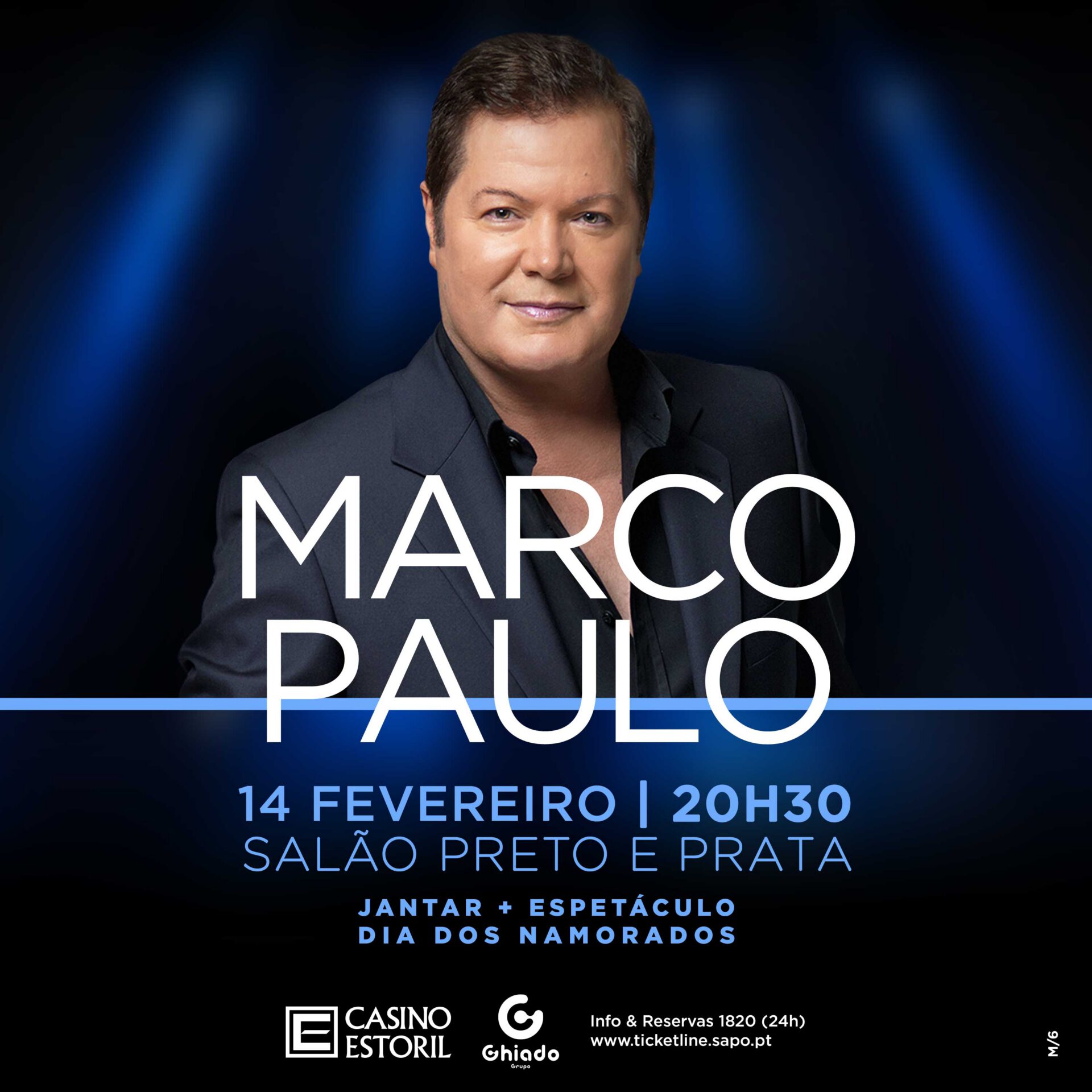 Tem mais de 50 anos de carreira mas ainda não atuou no Salão Preto e Prata, do Casino Estoril. Em noite especial, de São Valentim, Marco Paulo estreia-se nesta sala de espetáculos com um alinhamento de cerca de 17 canções, onde a melodia romântica aquecerá os corações apaixonados de todos os presentes. Este ano trocou a sua habitual presença em Toronto [Canadá], onde costuma celebrar o Dia dos Namorados, pelo Casino Estoril mas manterá a maior parte do reportório constituída por canções de amor a que sempre nos habitou. “Ninguém, Ninguém”, “Anita”, “Eu Tenho Dois Amores”, “Maravilhoso Coração” , bem como tema mais recentes, entre os quais “Assim Foi” e “Não te Esqueças”, vão fazer parte do alinhamento do espetáculo do dia 14 de fevereiro, o qual acontecerá depois de um elegante e romântico jantar.