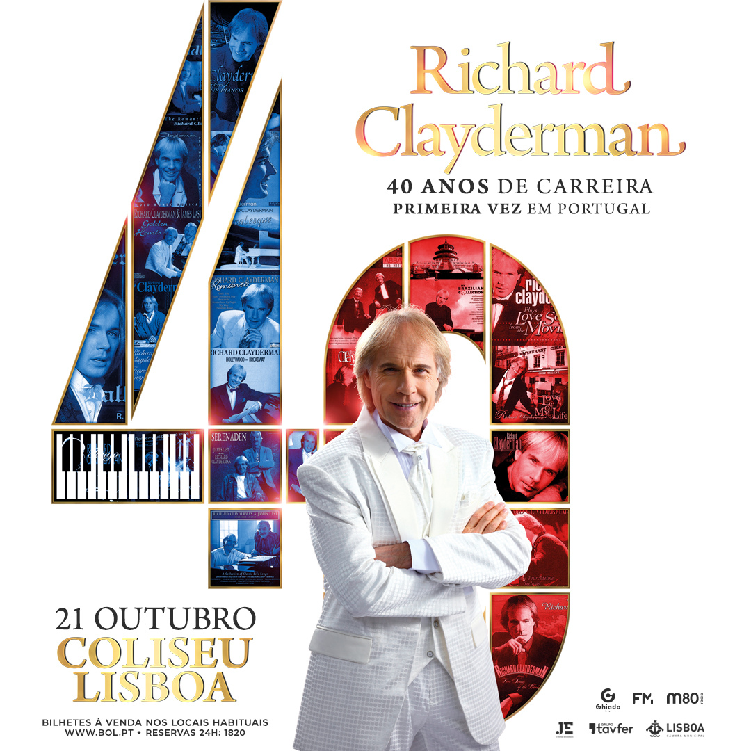 O famoso pianista francês estreia-se em território português com atuação única, a 21 de outubro, no Coliseu Lisboa. É caso para dizer que “toca piano e fala francês”. E nisso o seu sucesso é inquestionável. Richard Clayderman é um dos mais conceituados artistas famosos do mundo contemporâneo.A comemorar 40 anos de carreira, o pianista mais conhecido pela composição “Ballade pour Adeline”, garante tocar uma boa seleção do seu reportório de originais, bem como muitos temas românticos e clássicos de filmes do imaginário de todos. Dia 21 de outubro, no Coliseu Lisboa, o músico apresenta, ao vivo, os temas que o fizeram conquistar mais de mais de 340 discos de ouro e platina e alcançar a marca de mais de 150 milhões de álbuns vendidos em todo o mundo, ao longo da sua carreira.