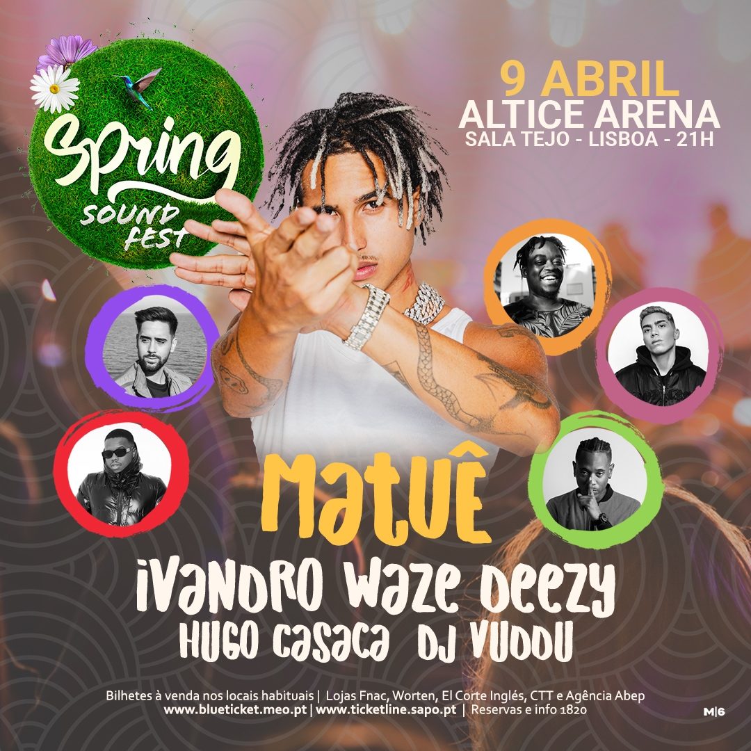 A partir do próximo ano, Portugal passa a ter mais um festival. Spring Sound Fest 2022, realiza-se a 9 de abril, na Altice Arena (Sala Tejo), e Matuê, um dos artistas brasileiros mais populares da atualidade, é cabeça de cartaz. Fenómeno de popularidade por cá, tendo já conquistado uma grande e sólida base de fãs portugueses, o rapper brasileiro, trará a este novo festival, entre outros, temas como “Quer Voar” e “Groupies” com Doode e Teto. A primeira edição está assim agendada para 2022, com início previsto para as 21h00, assumindo uma nova experiência. Além de Matuê, o cartaz do novo festival da cidade de Lisboa inclui ainda nomes como: Deezy e Amigos, Waze, Ivandro, Hugo Casaca e Dj Vuddu.